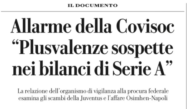 L'edizione odierna de "La Repubblica" si sofferma sull'allarme lanciato dalla covisoc sulle plusvalenze sospette in serie A. Sessantadue trasferimenti di...