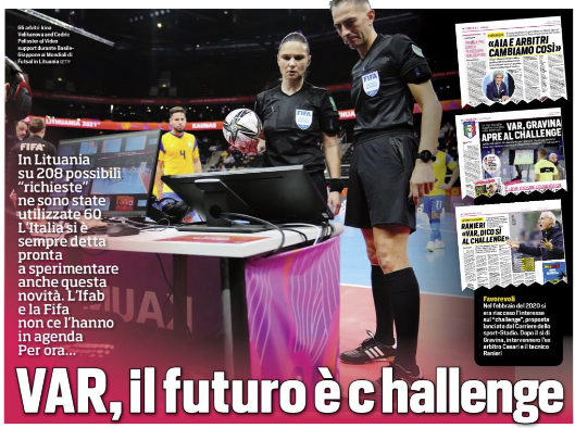 L'edizione odierna de "Il Corriere dello Sport" si sofferma sul futuro del Var. Un altro passo avanti, forse. Arriva dalla...