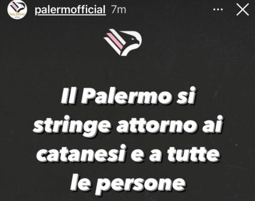 Attraverso le proprie storie Instagram il Palermo Fc ha pubblicato un messaggio di vicinanza nei confronti dei cittadini di Catania...