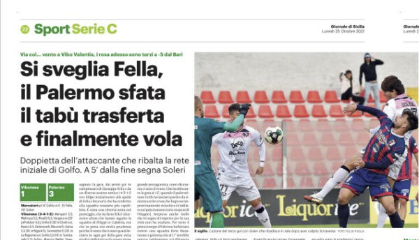 L'edizione odierna de "Il Giornale di Sicilia" dedica l'apertura della pagina sportiva al successo del Palermo contro la Vibonese. Primo...