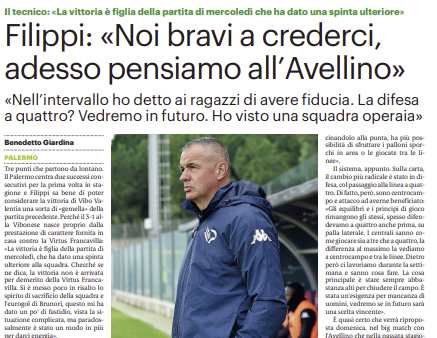 L'edizione odierna de "Il Giornale di Sicilia" si sofferma sulla gara vinta ieri dal Palermo attraverso le parole di Filippi....
