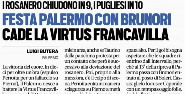L'edizione odierna de "La Repubblica" si sofferma sulla vittoria di ieri conquistata dal Palermo contro la Virtus Francavilla. Il carattere...