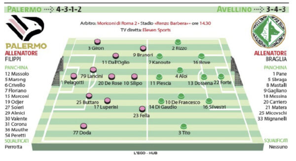 L'edizione odierna de "Il Giornale di Sicilia" ha stilato le probabili formazioni del match tra Palermo e Avellino in programma...