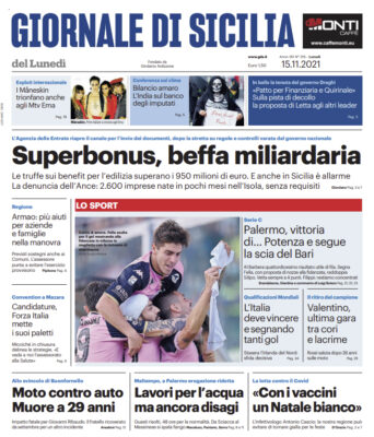 L'edizione odierna de "Il Giornale di Sicilia" si sofferma su vari temi in prima pagina. Le truffe sui benefit per...