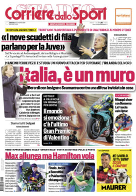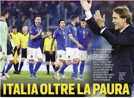 L'edizione odierna de "Il Corriere dello Sport" dedica la prima pagina all'Italia, impegnata domani contro l'Irlanda del Nord.