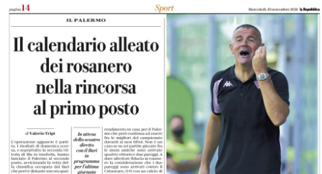 L'edizione odierna de "La Repubblica" si sofferma sull'assalto del Palermo al primo posto. L’operazione aggancio è partita. I risultati di...