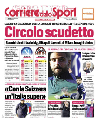 L'edizione odierna de "Il Corriere dello Sport" si sofferma in prima pagina sulla lotta scudetto.