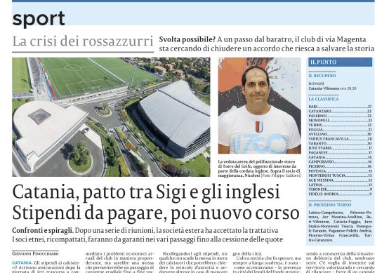 L'edizione odierna de "La Sicilia" si sofferma sulle ore frenetiche in casa Catania con il possibile arrivo di investitori inglesi...
