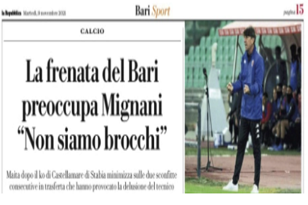 L'edizione odierna de "La Repubblica" si sofferma sulla frenata del Bari. Il Bari deve tornare immediatamente a correre. La sconfitta...