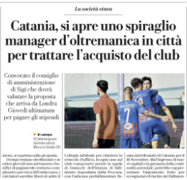 L'edizione odierna de "La Repubblica" si sofferma sul futuro del Catania, che potrebbe essere risollevato da un fondo inglese. Si...
