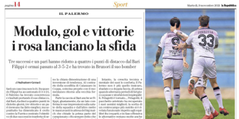 L'edizione odierna de "La Repubblica" si sofferma sulla risalita del Palermo che ha appena lanciato la sfida. Sarà un caso...