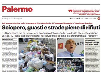 L'edizione odierna de "Il Giornale di Sicilia" si sofferma sul caos a Palermo, tra sciopero e strade piene di rifiuti....