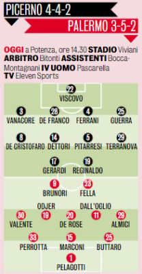L'edizione odierna de "La Gazzetta dello Sport" ha stilato le probabili formazioni del match di oggi tra Picerno e Palermo....