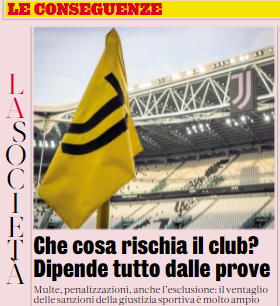 L'edizione odierna de "La Gazzetta dello Sport" si sofferma sui rischi della Juve dopo lo scandalo plusvalenze. Multe, penalizzazioni, anche...