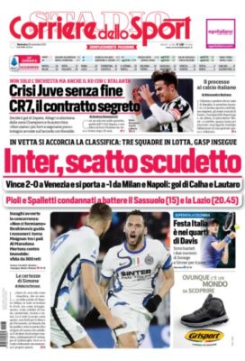 L'edizione odierna de "Il Corriere dello Sport" si sofferma in prima pagina sulla classifica di serie A e la vittoria...