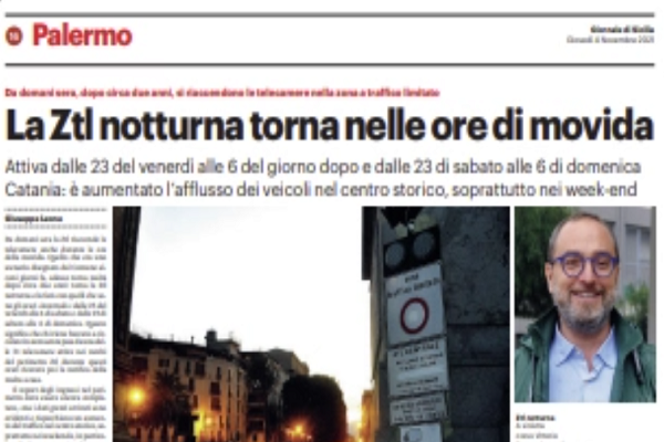 L'edizione odierna de "Il Giornale di Sicilia" si sofferma sul ritorno della Ztl notturna. Da domani sera la Ztl riaccende...