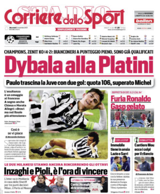 L'edizione odierna de "Il Corriere dello Sport" dedica la prima pagina alla vittoria della Juventus di ieri in Champions League,...