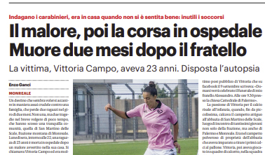 L'edizione odierna de "Il Giornale di Sicilia" si sofferma sulla scomparsa della calciatrice Vittoria Campo. Un destino che sembra volersi...