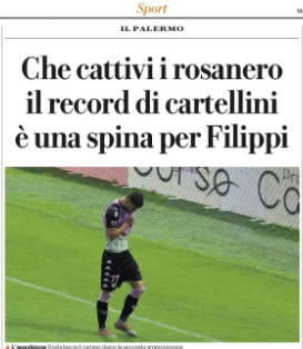 L'edizione odierna de "La Repubblica" si sofferma sulla collezione di cartellini rossi della squadra di Filippi. Il Palermo è la...
