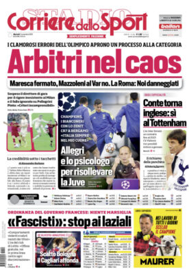 L'edizione odierna de "Il Corriere dello Sport" si sofferma sul caos arbitri in serie A. L’idea di prendere i pacchi...