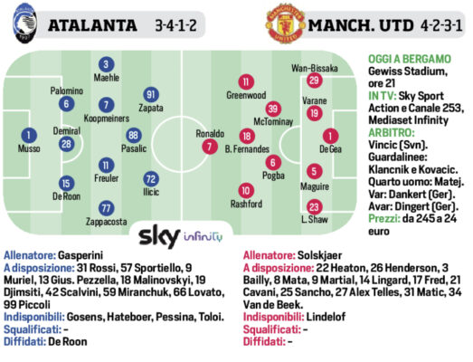 Corriere dello Sport: “Champions League, stasera Atalanta-Manchester United. Le probabili formazioni”