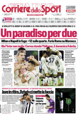 L'edizione odierna de "Il Corriere dello Sport" si sofferma in prima pagina sulla classifica di serie A che vede in...