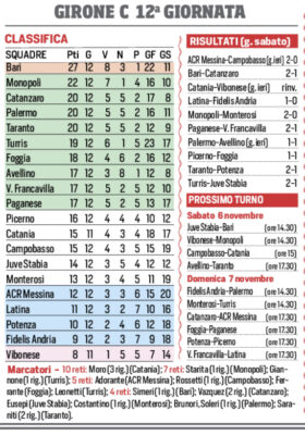 L'edizione odierna de "Il Corriere dello Sport" si sofferma sul programma della prossima giornata di serie C e sulla classifica.