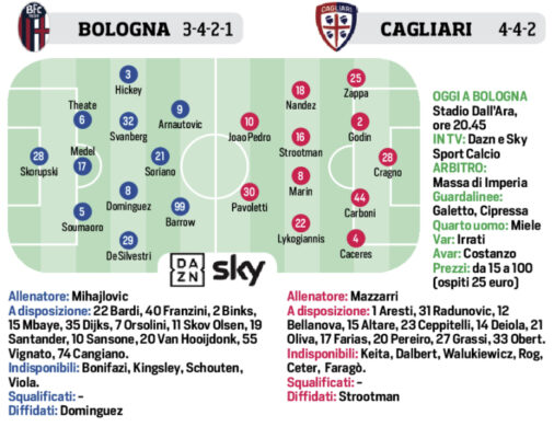 L'edizione odierna de "Il Corriere dello Sport" si sofferma sulla gara di oggi di serie A tra Bologna e Cagliari....