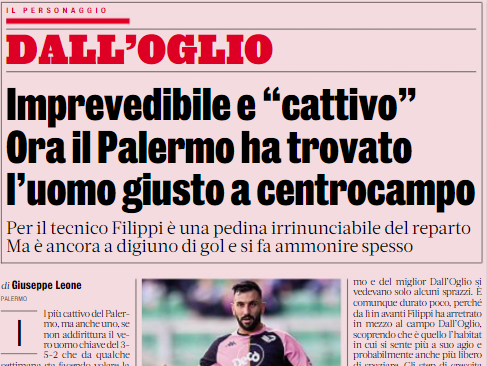 L'edizione odierna de "La Gazzetta dello Sport" si sofferma sul centrocampo del Palermo con Filippi che ha trovato nell'imprevedibile e...