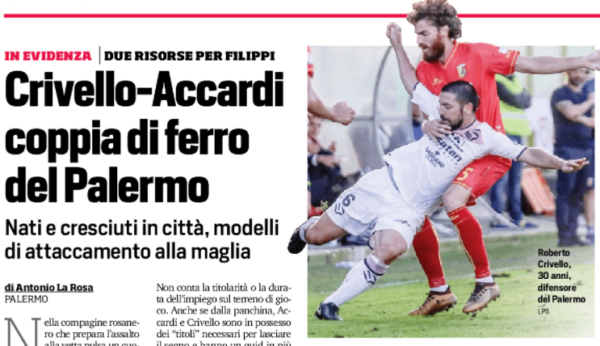 Corriere dello Sport: “Crivello-Accardi, coppia di ferro del Palermo. Nati e cresciuti in città, modelli di attaccamento alla maglia”
