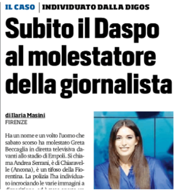 L'edizione odierna de "Il Corriere dello Sport" si sofferma sul caso riguardante Greta Beccaglia e la molestia in diretta tv....