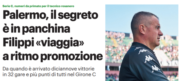 L'edizione odierna de "Il Giornale di Sicilia" si sofferma sul ritmo del Palermo con Giacomo Filippi, un ritmo da promozione....