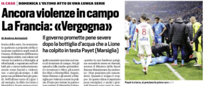 L'edizione odierna de "Il Corriere dello Sport" si sofferma sulle violenze in campo in Francia. Ironia della sorte, ha sentenziato...