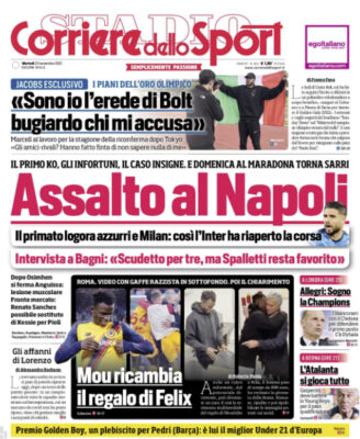 Prima pagina Corriere dello Sport: “Assalto al Napoli! Il primato logora azzurri e Milan: così l’Inter ha riaperto la corsa”