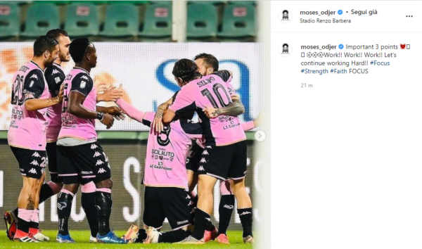 Attraverso il proprio profilo Instagram Moses Odjer festeggia la vittoria contro la Paganese pubblicando un post con scritto: "Tre punti...
