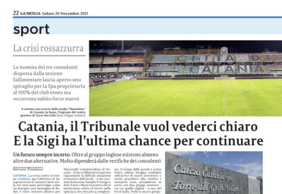 L'edizione odierna de "La Sicilia" si sofferma sulla situazione del Catania in attesa della decisione del tribunale che dovrebbe arrivare...