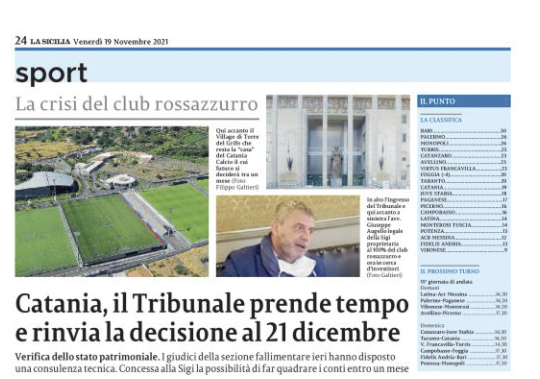 L'edizione odierna de "La Sicilia" si sofferma sulla situazione del Catania con la decisione sul futuro rinviata dal tribunale al...
