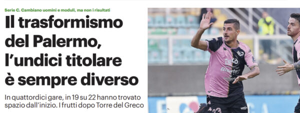 Gds: “Il trasformismo del Palermo, l’undici titolare è sempre diverso”