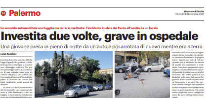 L'edizione odierna de "Il Giornale di Sicilia" si sofferma sull'incidente che ha coinvolto una 20enne. Investita due volte, una Fiat...