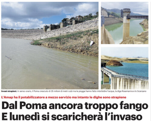 L'edizione odierna de "Il Giornale di Sicilia" si sofferma sull'invaso Poma. Acqua benedetta e acqua maledetta. Da giorni viene giù...