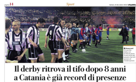 L'edizione odierna de "La Repubblica" si sofferma sul pubblico ritrovato nel derby di Sicilia. Il derby di Sicilia ritrova il...