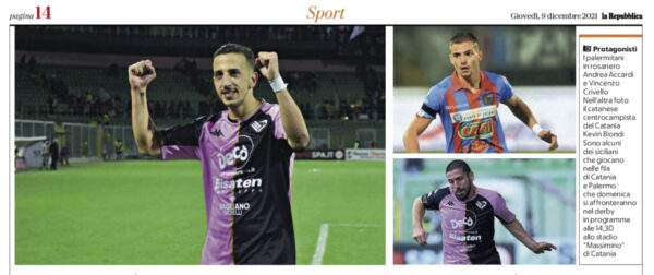 L'edizione odierna de "La Repubblica" si sofferma sul derby di Sicilia in programma domenica. Nel Palermo l’esperienza dei calciatori nati...