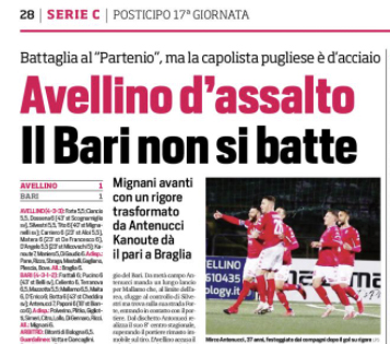 L'edizione odierna de "Il Corriere dello Sport" si sofferma sull'Avellino e il Bari dopo il pari di ieri. I l...