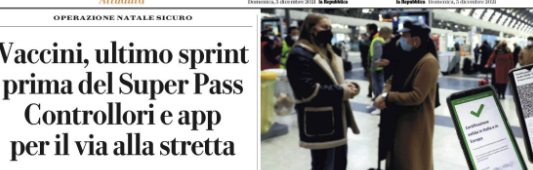 L'edizione odierna de "La Repubblica" si sofferma sui vaccini in Sicilia. Alla vigilia dell’arrivo del Super Green Pass che rende...