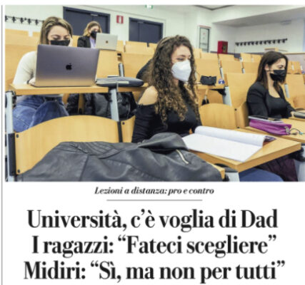 L'edizione de "La Repubblica" si sofferma sulla situazione delle università in materia di covid. Lezioni online per sempre, almeno per...