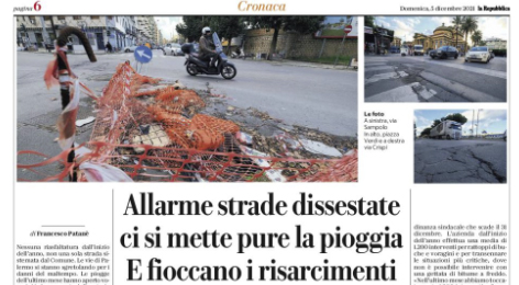 L'edizione odierna de "La Repubblica" si sofferma sulle strade di Palermo messe sotto torchio anche dalle piogge. Nessuna riasfaltatura dall’inizio...