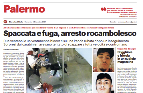 L'edizione odierna de "Il Giornale di Sicilia" si sofferma su una fuga rocambolesca dopo una rapina a Palermo. L’assalto con...