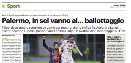 L'edizione odierna de "Il Giornale di Sicilia" si sofferma sulla gara di domani tra Palermo e Monopoli. Una sconfitta non...