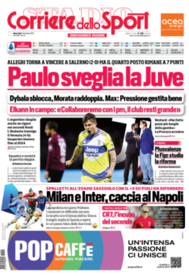 L'edizione odierna de "Il Corriere dello Sport" si sofferma in prima pagina sulla vittoria della Juventus di ieri contro la...