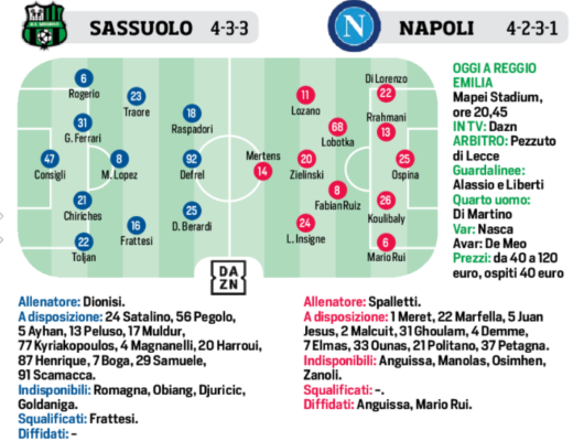 L'edizione odierna de "Il Corriere dello Sport" si sofferma sulla gara di oggi tra Napoli e Sassuolo. Oggi capitano, nove...